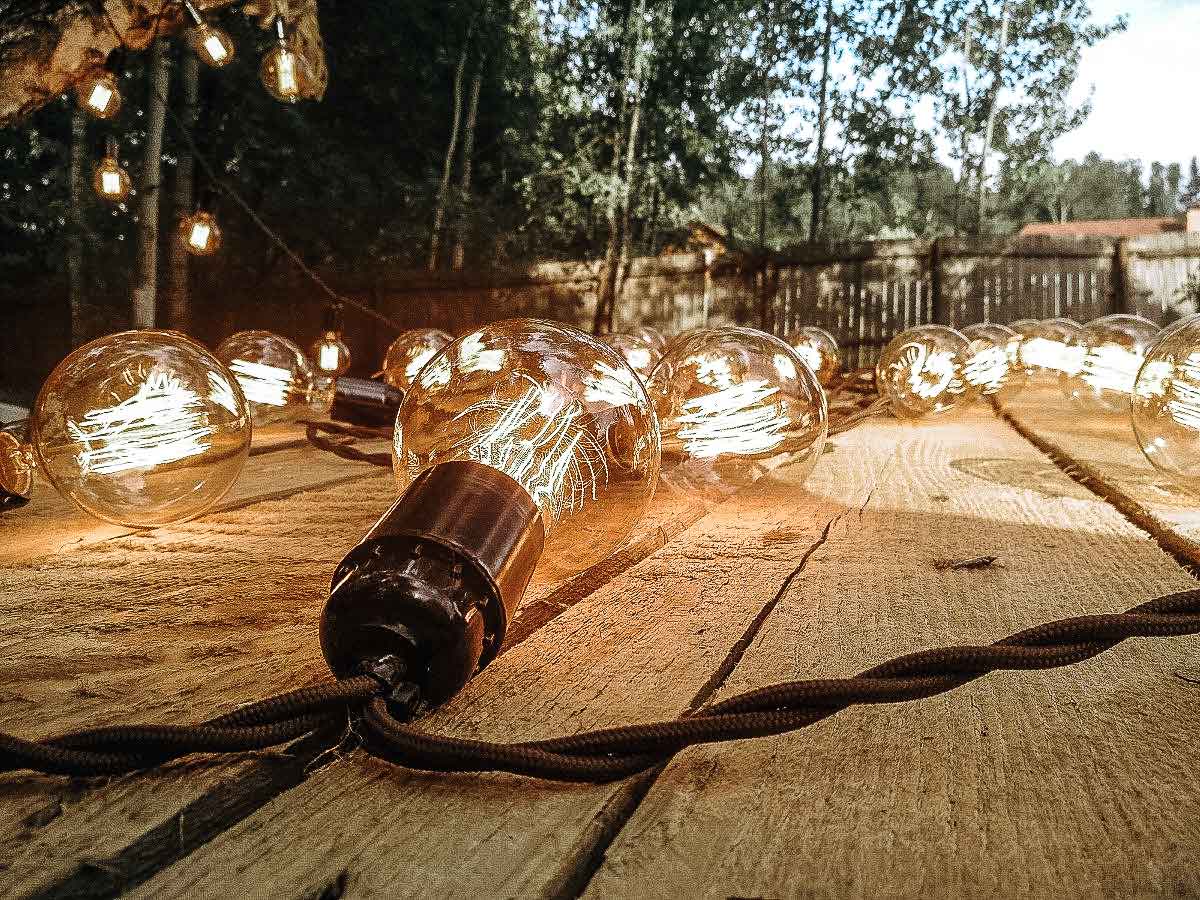 09Гирлянды выполнены в стиле ретро и подходят для любого интерьера. А коричневый и белый цвета провода и форма подобранных ламп — классика, проверенная временем.